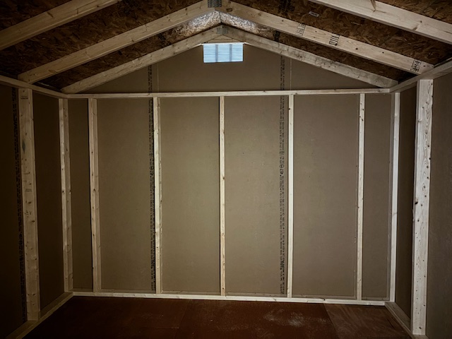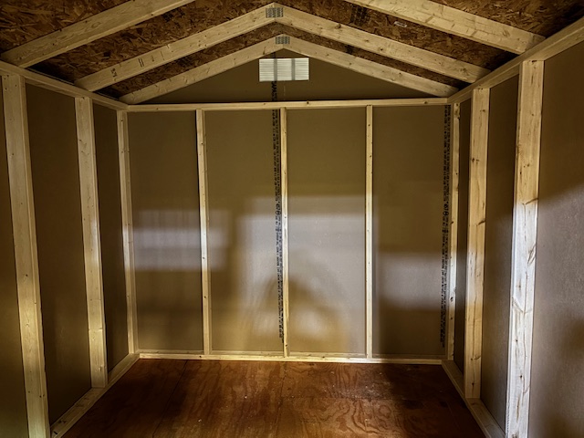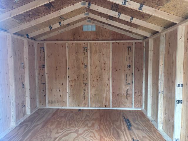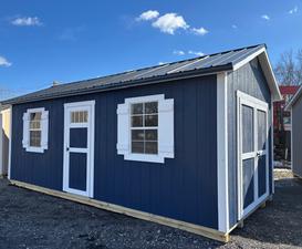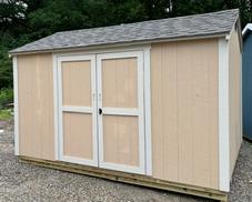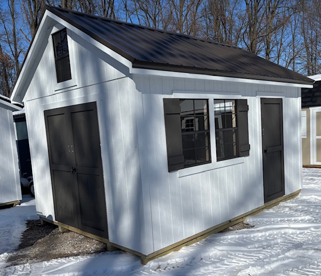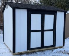 #38 -8x10 Gable, white paint, black trim, black shingles.