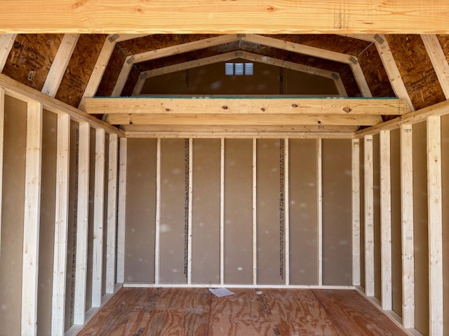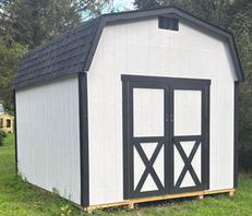 #63 - 10x12 Grand Barn, 2 lofts, white paint, black trim, black shingles