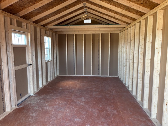 #26 -10x16 pendenza, 3 windows, 3 transom doors, work bench, 2 lofts, whale paint, white trim, black shingles,