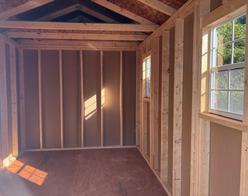 #69 -8x8 Gable, Red paint, white trim, , Black shingles.