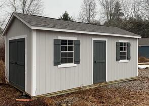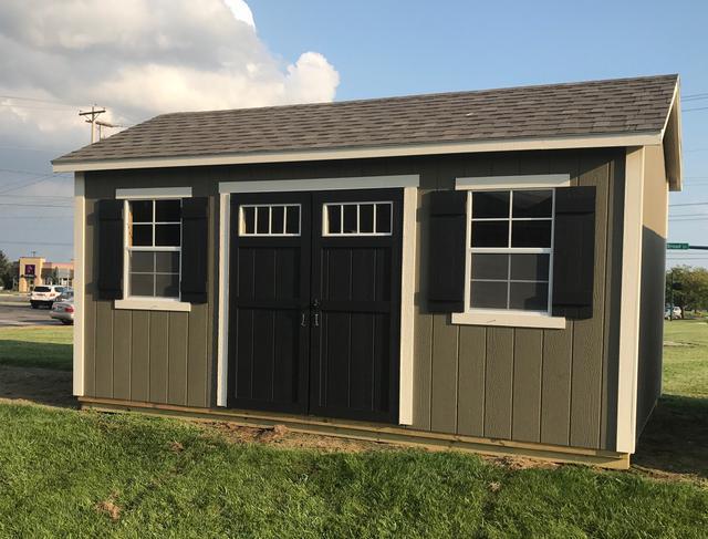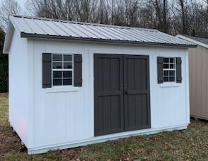 10x12 Cottage with metal roof, transom windows and 2 windows