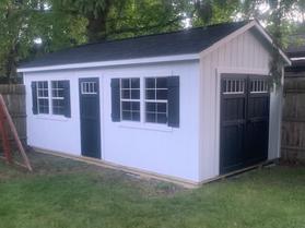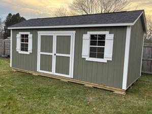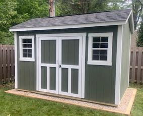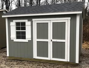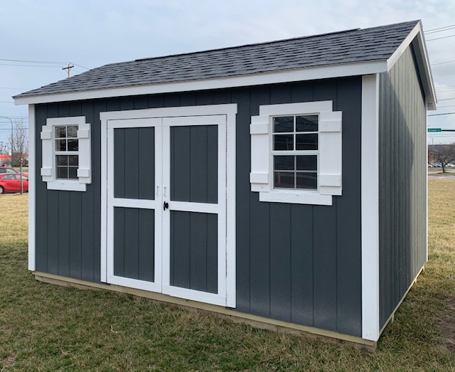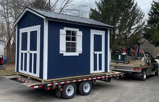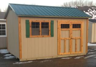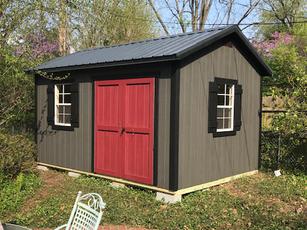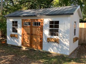 10x14 Cottage with 2 windows, CedarTrim, transom Windows & Metal Roof