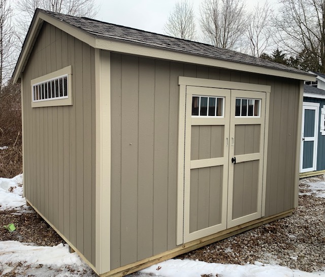 The Cottage is our most popular shed. It is an attractive building with a 5/12 roof pitch and overhangs on all 4 sides. it is taller than the Gable and includes 2 Loft areas and Window(s).