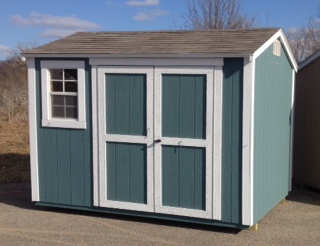 The Gable is simple classic shed with a lot wall space and a low profile roof line. The Gable features 6 1/2' sidewalls and a 4/12 roof pitch. This shed is shorter and less expensive than The Cottage. Doors can be placed on the side or the end of the shed. The Gable is a nice addition to any yard.